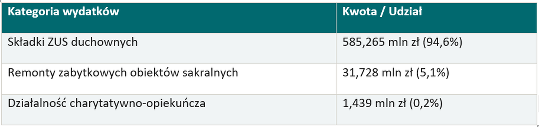 94,6% środków FK to składki na ubezpieczenie społeczne i zdrowotne duchownych. Nie luksusowe pensje. Nie złote klamki w kuriach. Nie limuzyny dla biskupów. Składki ZUS i NFZ — dokładnie takie same, jakie państwo opłaca za inne grupy zawodowe: rolników (KRUS), żołnierzy, funkcjonariuszy.